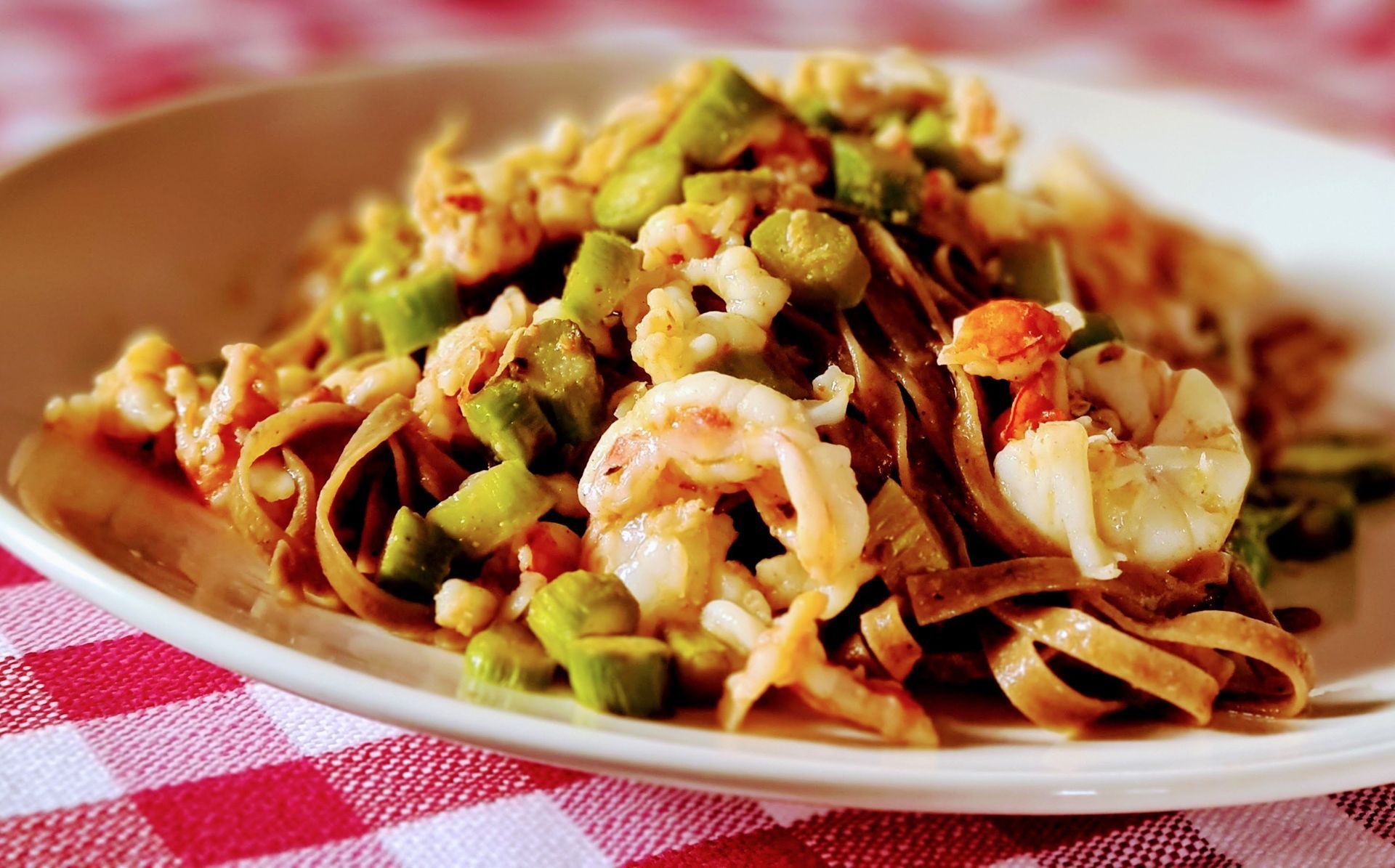 Tagliolini alla farina di Birra, Gamberi e Asparagi