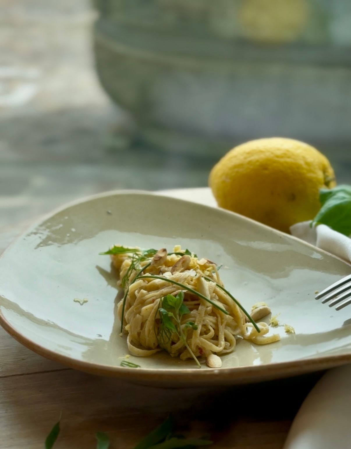 La fibra della mela nei tagliolini dà una consistenza "rustica" che assorbe bene il latticello, mentre l'acidità degli agrumi "pulisce" il palato e bilancia la dolcezza naturale della mela friulana.